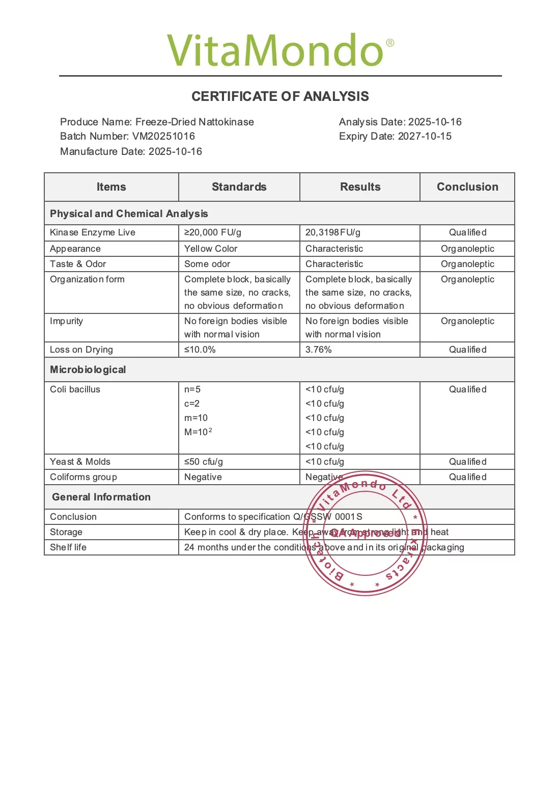 Freeze-Dried Nattokinase 20,000 FU/g Enteric-Coated