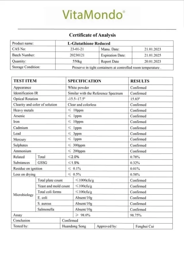 Glutathione is generally well tolerated at suggested amounts. Those who are pregnant, nursing, or managing specific health concerns should seek advice from a qualified health professional before use. Store in a cool, dry place away from direct light.
