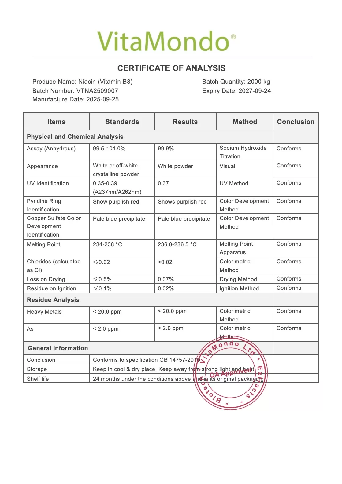 Niacin 100% (Vitamin B3, Nicotinic Acid)