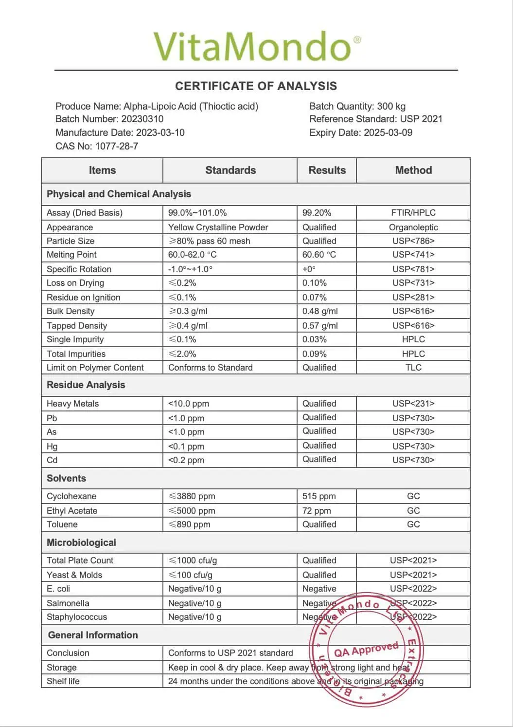 Premium Alpha-Lipoic Acid (ALA) 99% (Thioctic Acid). No additives or fillers.