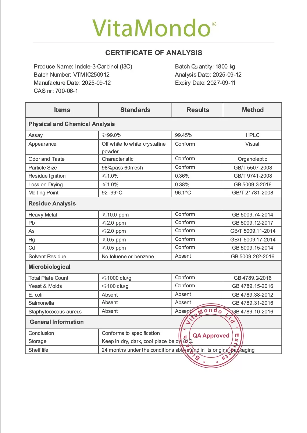 Our Premium I3C is ≥99% pure and derived from plant sources, providing a concentrated way to obtain this beneficial phytochemical in consistent, measured amounts.