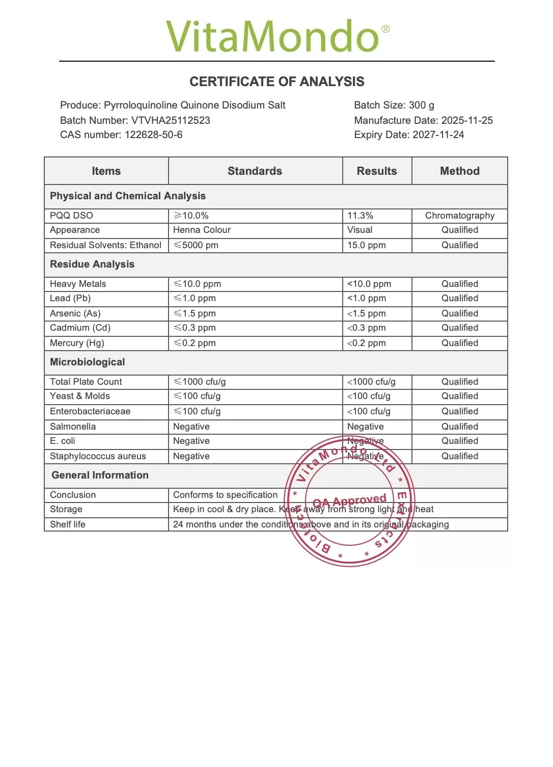 Premium Pyrroloquinoline Quinone (PQQ) Disodium Salt 10%