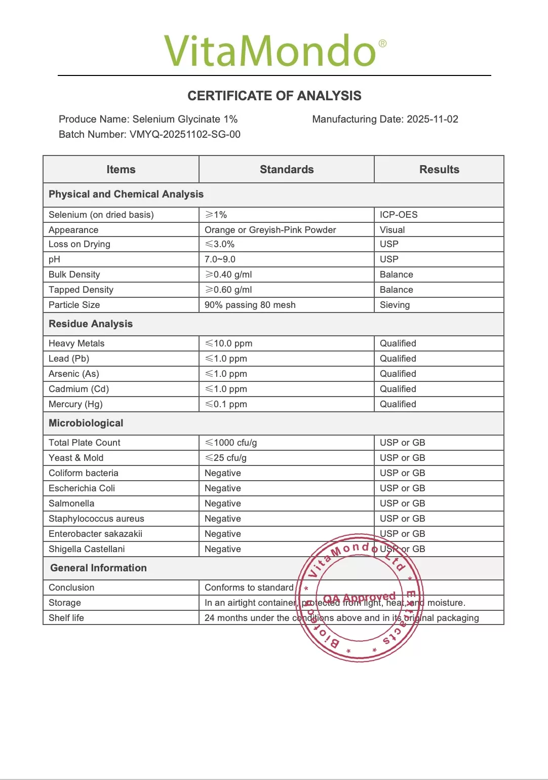 Our Premium Selenium Glycinate is an essential trace mineral required in small amounts for normal physiological function.