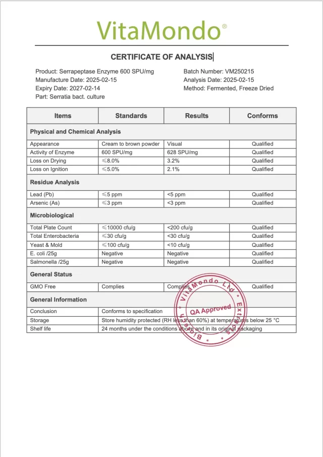 With a history of use in wellness supplements since the 1960s, serrapeptase is valued for its ability to promote natural recovery processes, maintain comfortable mobility, and support overall respiratory and vascular health.