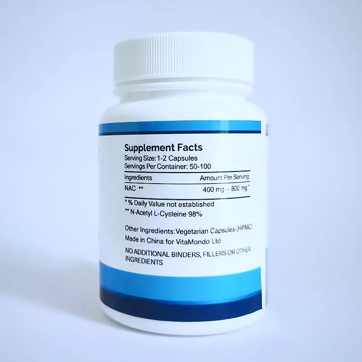 Pure N-Acetyl-L-Cysteine (NAC) Capsules. Contains 98% NAC in 400 mg capsules. No other ingredients.